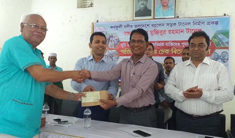 আনোয়ারায় বঙ্গবন্ধু শেখ মুজিবুর রহমান টানেল সড়কের জন্য অধিগ্রহণকৃত ভূমির মালিকদের ক্ষতিপূরণের অতিরিক্ত মঞ্জুরির চেক বিতরণ করা হয়েছে।