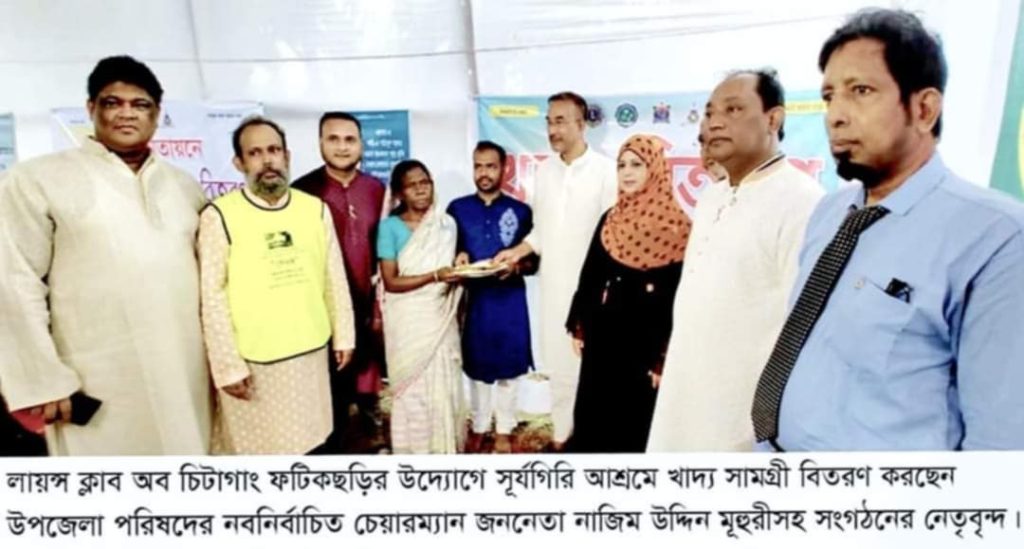 বিশ্বের সর্ববৃহৎ ও সর্বশ্রেষ্ট আন্তর্জাতিক সেবামূলক সংগঠন লায়ন্স ইন্টারন্যাশনাল জেলা ৩১৫-বি৪, বাংলাদেশ এর অন্তর্ভূক্ত লায়ন্স ক্লাব অব চিটাগাং ফটিকছড়ির উদ্যোগে ফটিকছড়িস্থ সূর্যগিরি আশ্রমে গত ১২ জুলাই ২০২৪ ক্লাব প্রেসিডেন্ট লায়ন ইঞ্জি: মো: জাবেদ আবছার চৌধুরী’র সভাপতিত্বে খাদ্য সামগ্রী বিতরণ কর্মসূচী অনুষ্ঠিত হয়।