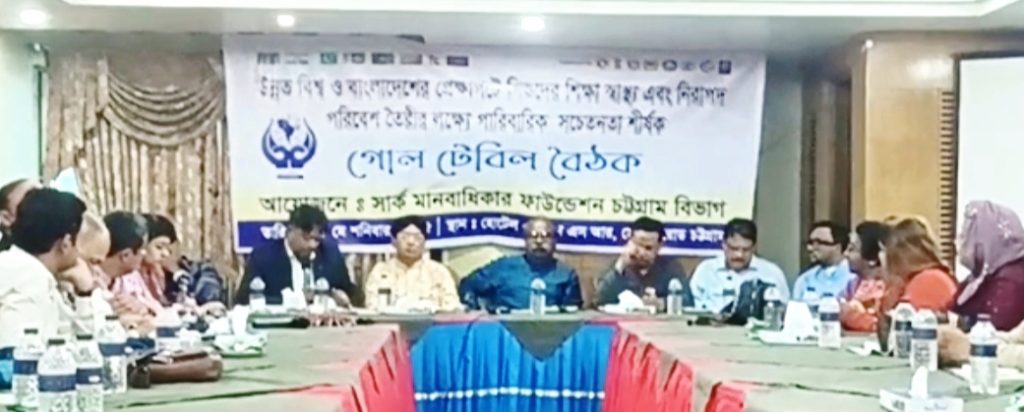 সার্ক মানবাধিকার ফাউন্ডেশন চট্টগ্রাম বিভাগের আয়োজনে ‘উন্নত বিশ্ব ও বাংলাদেশের প্রেক্ষাপটে শিশুদের শিক্ষা স্বাস্থ্য এবং নিরাপদ পরিবেশ তৈরির লক্ষ্যে পারিবারিক সচেতনতা’ শীর্ষক গোলটেবিল বৈঠকগতকাল ২৪ মে (শনিবার) সকাল ১১টায় হোটেল এশিয়ান এসআর’র কনফারেন্স রুমে দৈনিক চাটগাঁর চোখ সম্পাদক এ কে এম জহুরুল ইসলামের সভাপতিত্বে অনুষ্ঠিত হয়।