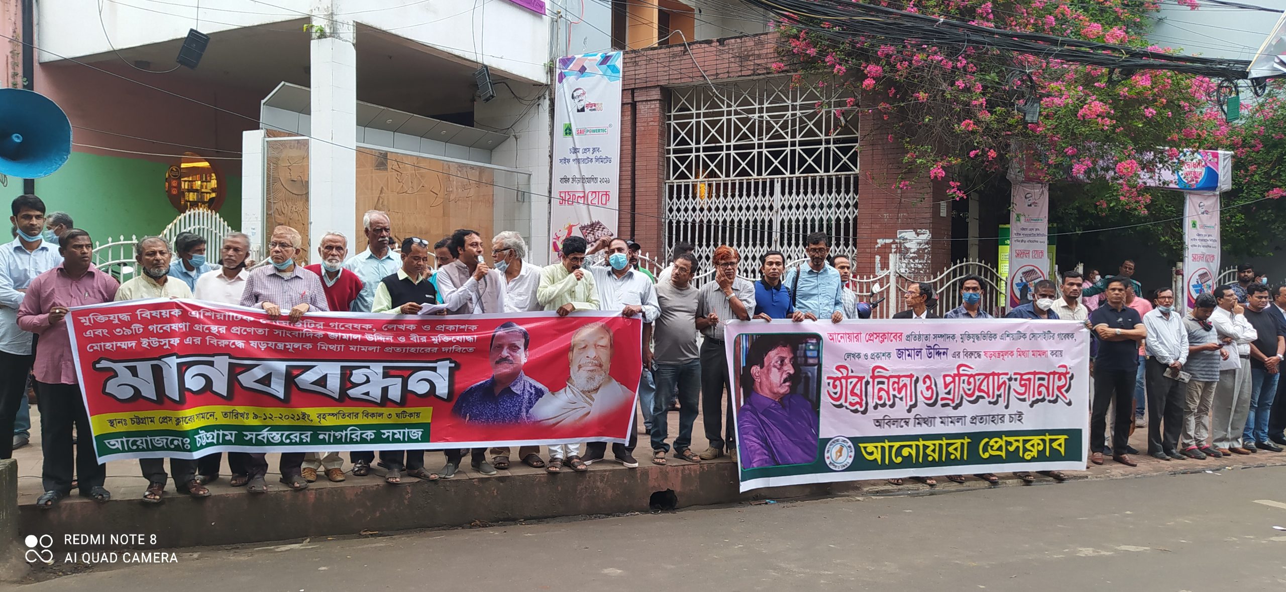 লেখক-গবেষক জামাল উদ্দিন ও বীর মুক্তিযোদ্ধা মোহাম্মদ ইউসুফের নামে রাজাকার পুত্রের মামলার প্রতিবাদে মানববন্ধন ডিসেম্বর ৯, ২০২১